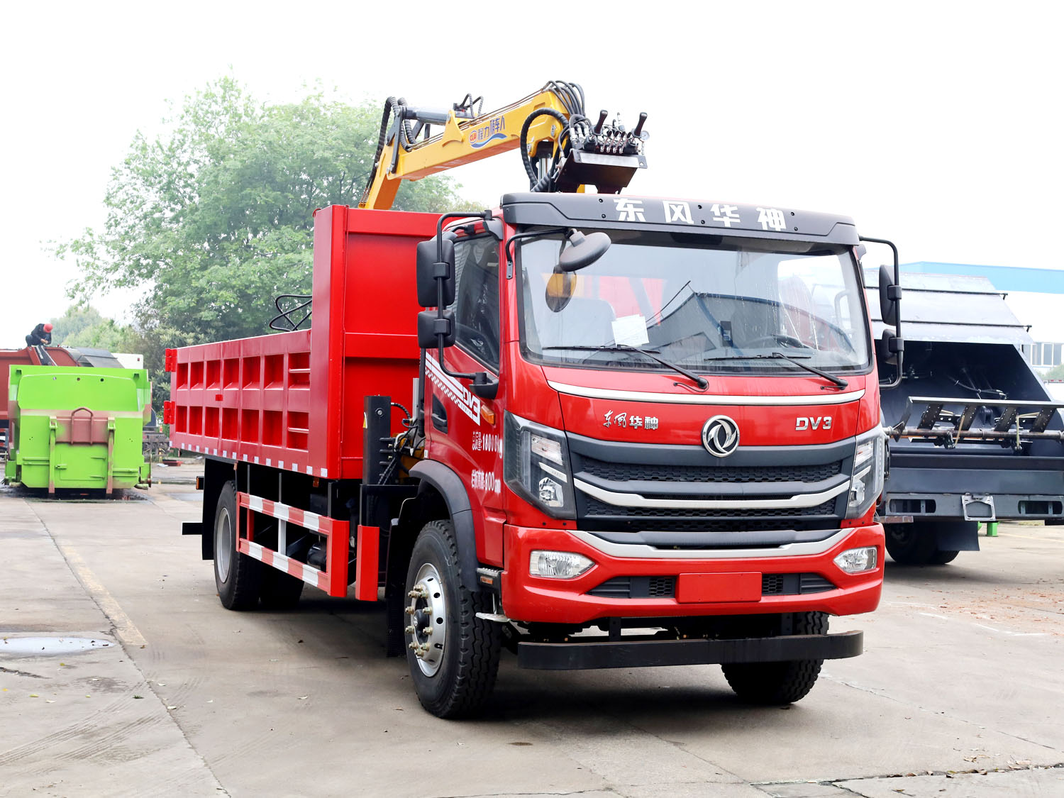 5181东风华神DV3单排上装程力随车人7.5米抓木机(2+2平口夹具,前置顶自卸) - 上一个产品:东风华神DV3单排上装程力随车人6.3吨3节随车吊(3+2夹具) 下一个产品:5181东风华神DV3单排上装程力随车人7.5米抓木机(4+3抓具,加高仓栏)